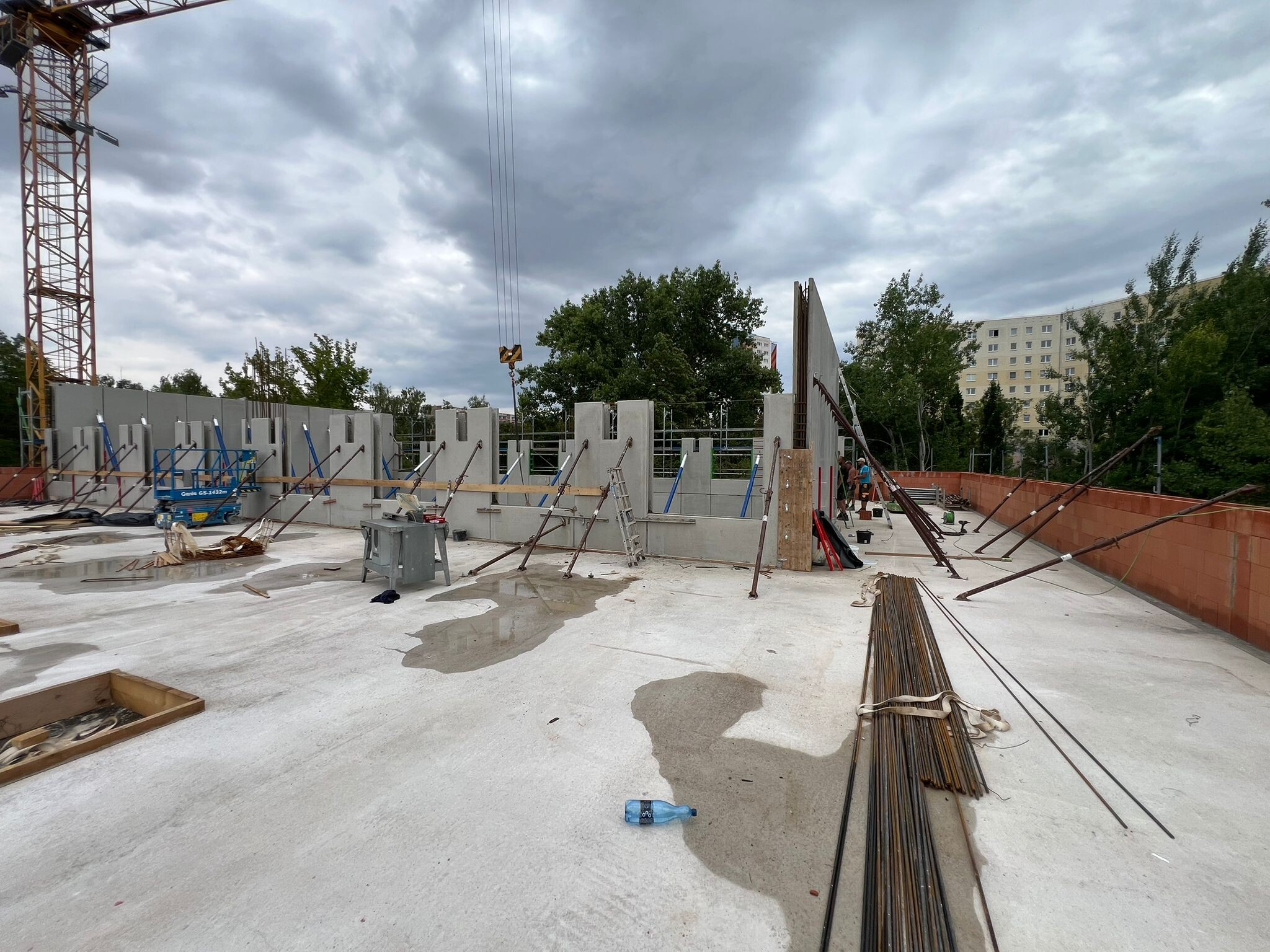 Die Sporthalle erfordert eine tragfähige Konstruktion, die sowohl den Anforderungen an große Spannweiten als auch der Integration von Holzbinder- und Stahlbetonbauteilen gerecht wird. Besonders anspruchsvoll sind die auskragenden Stahlbetonwände, die ohne zusätzliche Abstützungen auskommen müssen. Zudem galt es, die unterschiedlichen Nutzungsbereiche – Spielfläche, Funktionsräume und Klassenzimmer – statisch und funktional optimal zu verbinden.