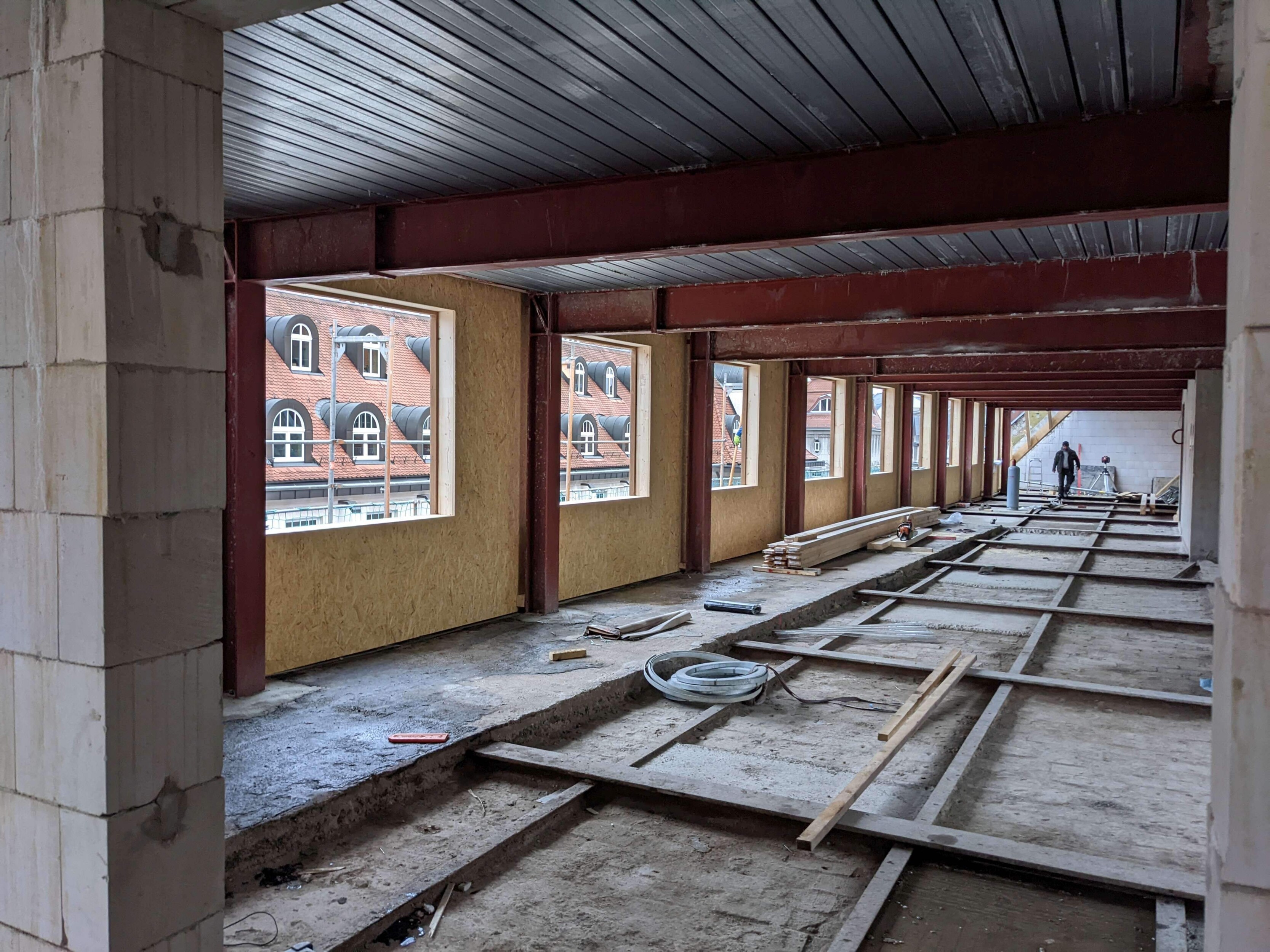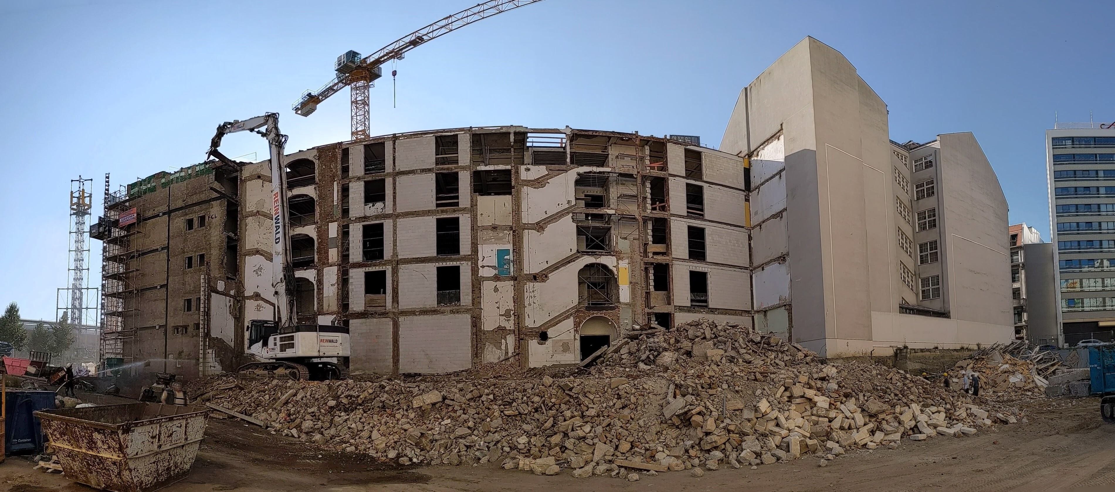Für die Umnutzung des Gebäudes als Appartementhaus werden zwei neue Treppenhäuser im Inneren des Gebäudes errichtet. Die beiden bestehenden Treppenhäuser werden anschließend abgebrochen. Das durch Kriegseinwirkung rückgebaute Dachgeschoss wird einschließlich Spitzboden wieder neu errichtet.