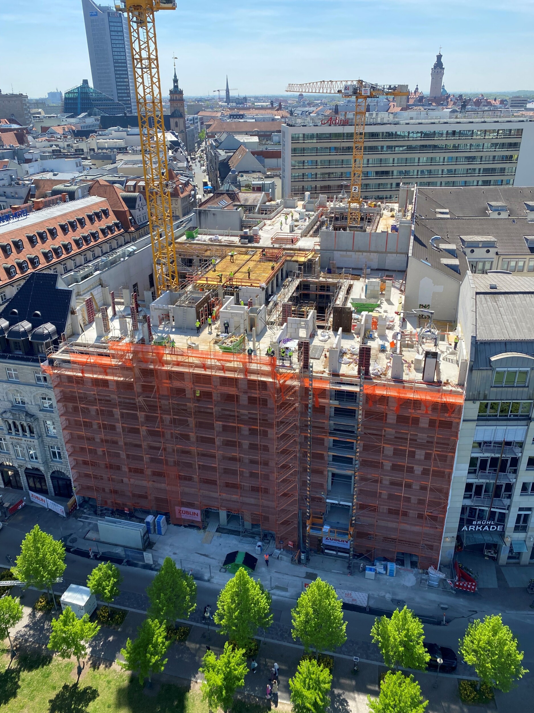 Das Bauvorhaben „Harmelinquartier“ in Leipzig besteht aus einem historischen Bestandsgebäude in der Nikolaistraße und zwei Neubauteilen in der Baulücke zwischen Richard-Wagner-Straße und Brühl. Gemeinsam bilden die Bauteile ein Hotel-Ensemble.