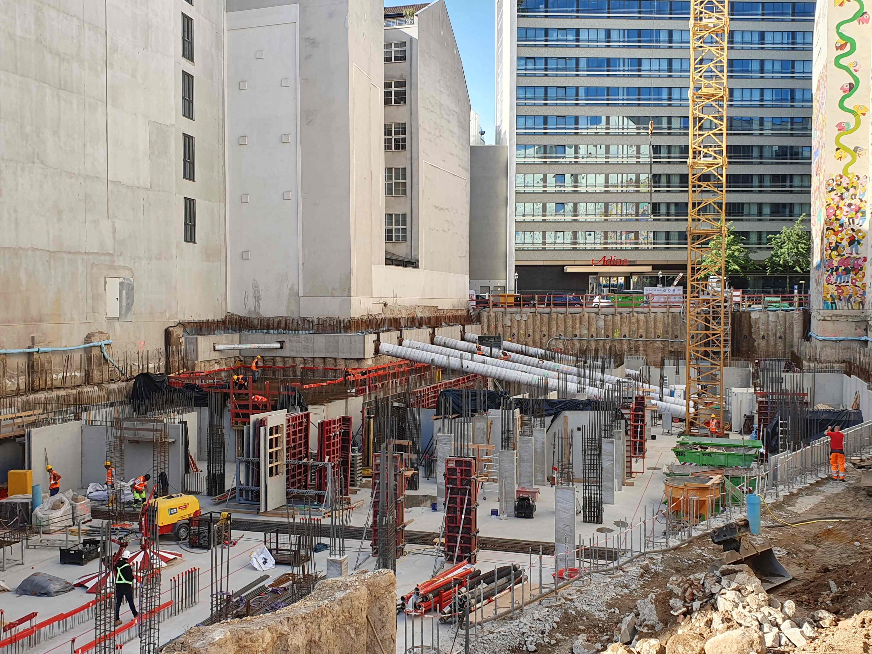Die Gebäude sind zweifach unterkellert und werden hier als Tiefgarage und Technikbereiche genutzt. Die Querung des Citytunnels Leipzig unterhalb des Komplexes erfordert besondere statische Betrachtungen in Bau- und Endzuständen.