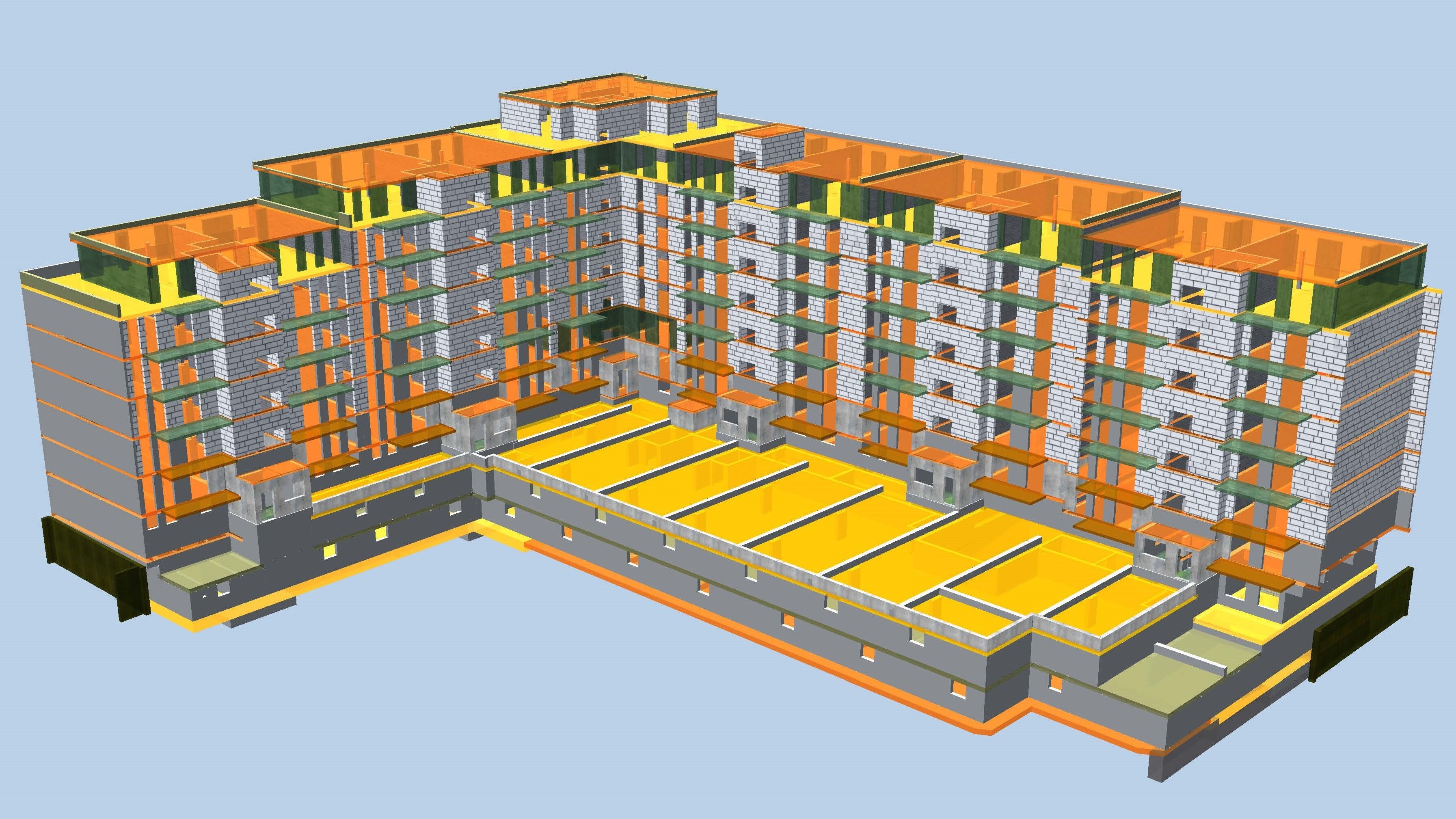 Im Leipziger Zentrum entstand mit dem Projekt Konstantinum ein Wohn- und Gewerbekomplex aus sechs Gebäudeteilen auf einer gemeinsamen Tiefgarage. Der Komplex umfasst zwei Untergeschosse, ein Erdgeschoss mit Gewerbeflächen sowie bis zu acht Obergeschosse mit 123 Wohnungen. Die Massivbauweise mit Mauerwerkswänden, Stahlbetonstützen und Flachdecken wurde durch die gestaffelte Gebäudegeometrie und verspringende Fassaden herausgefordert, die einen komplexen Lastabtrag erforderten.