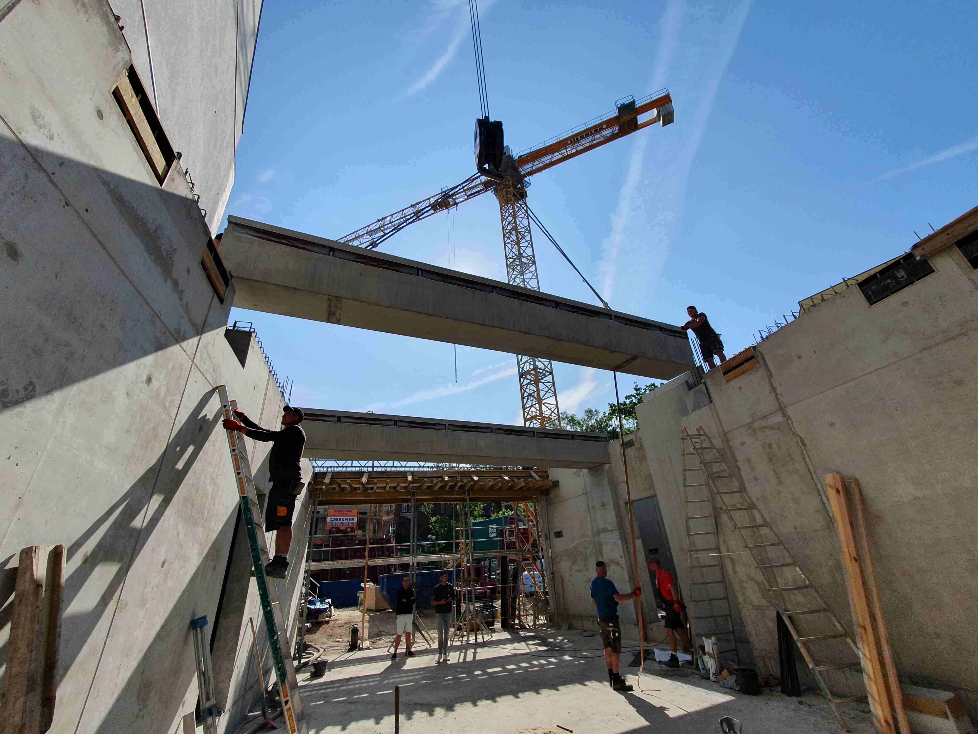 Einheben der Spannbetonträger