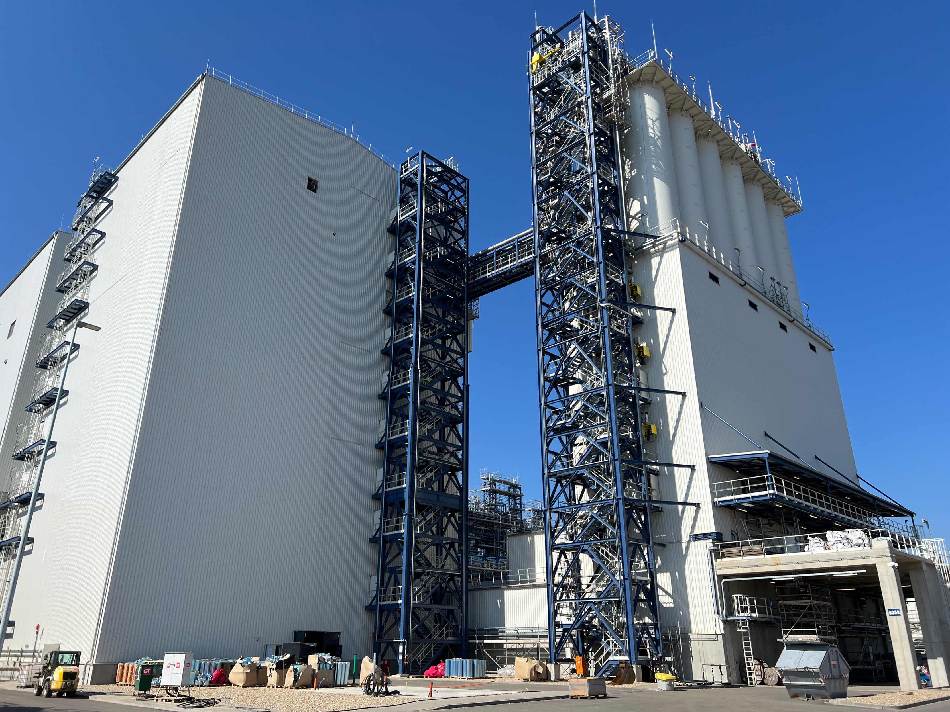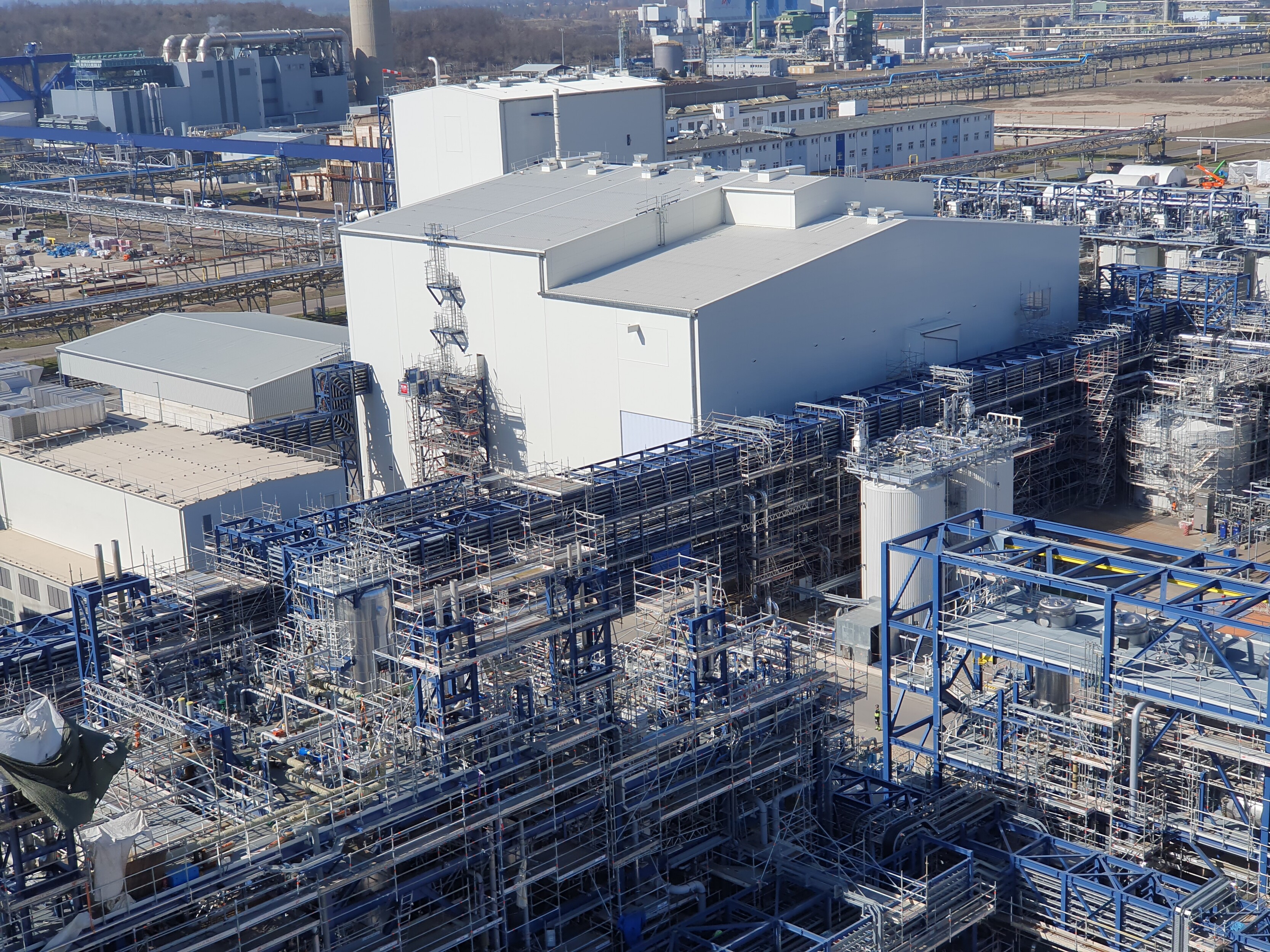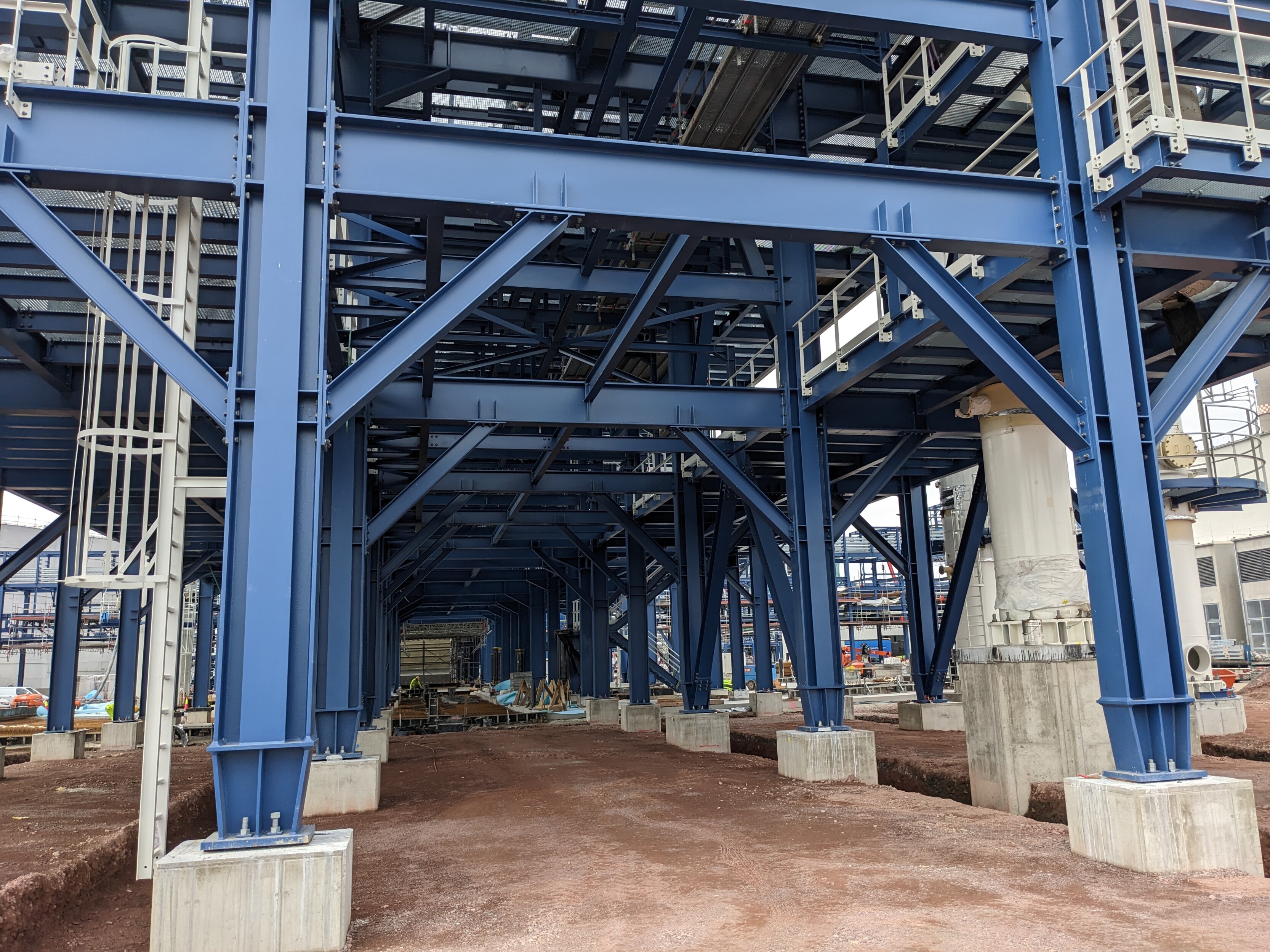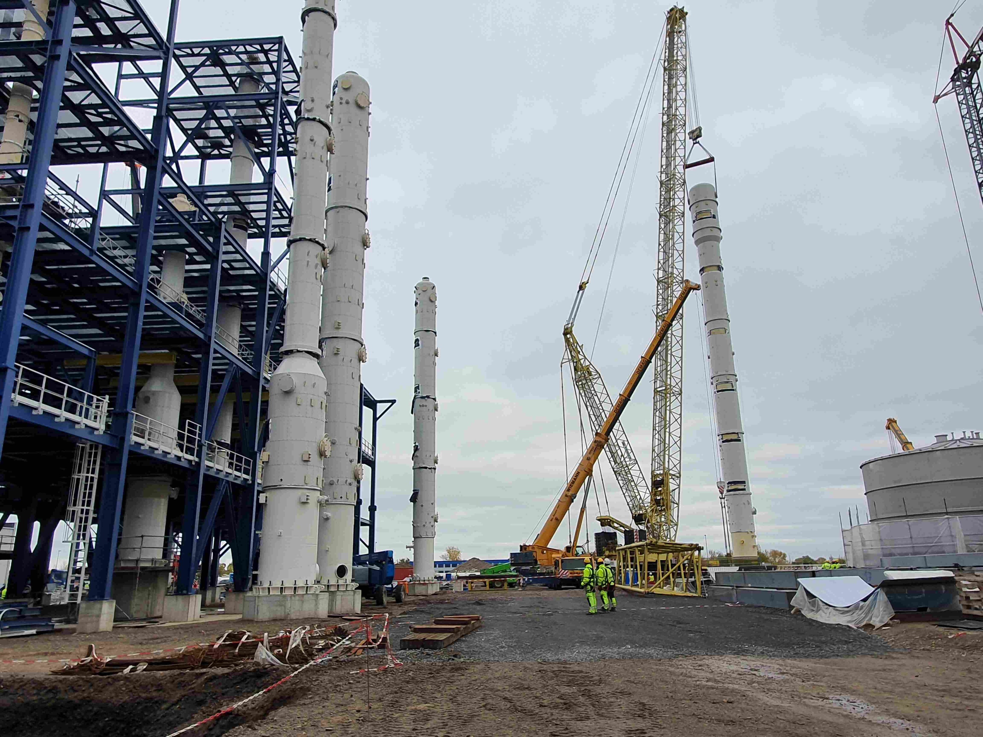 Insgesamt wurden für dieses Bauvorhaben mehr als 15.000 Tonnen Stahl benötigt zzgl. Anlagen, Behälter, Silos, Tanks, Kolonnen und Rohrleitungen.